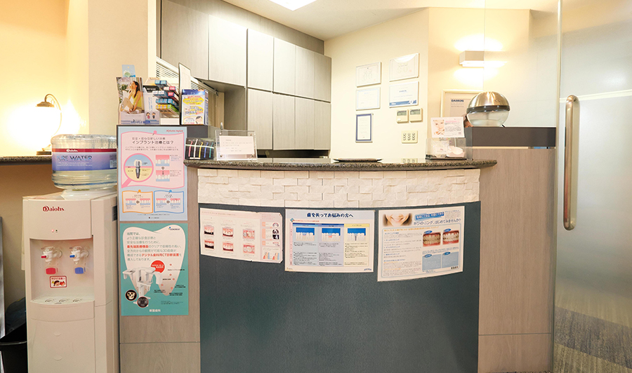 場所柄、ビジネスマンの方が多く、お仕事帰りに気軽に通院できるように、平日は20時まで診療するようにしました。カウンセリングでは、患者さまの立場に立った、視覚的にも分かりやすい説明を心がけております。その他の取り組みとして、痛みの少ない麻酔処置を行い、患者さまのお身体にできる限り負担をかけないように配慮しています。
